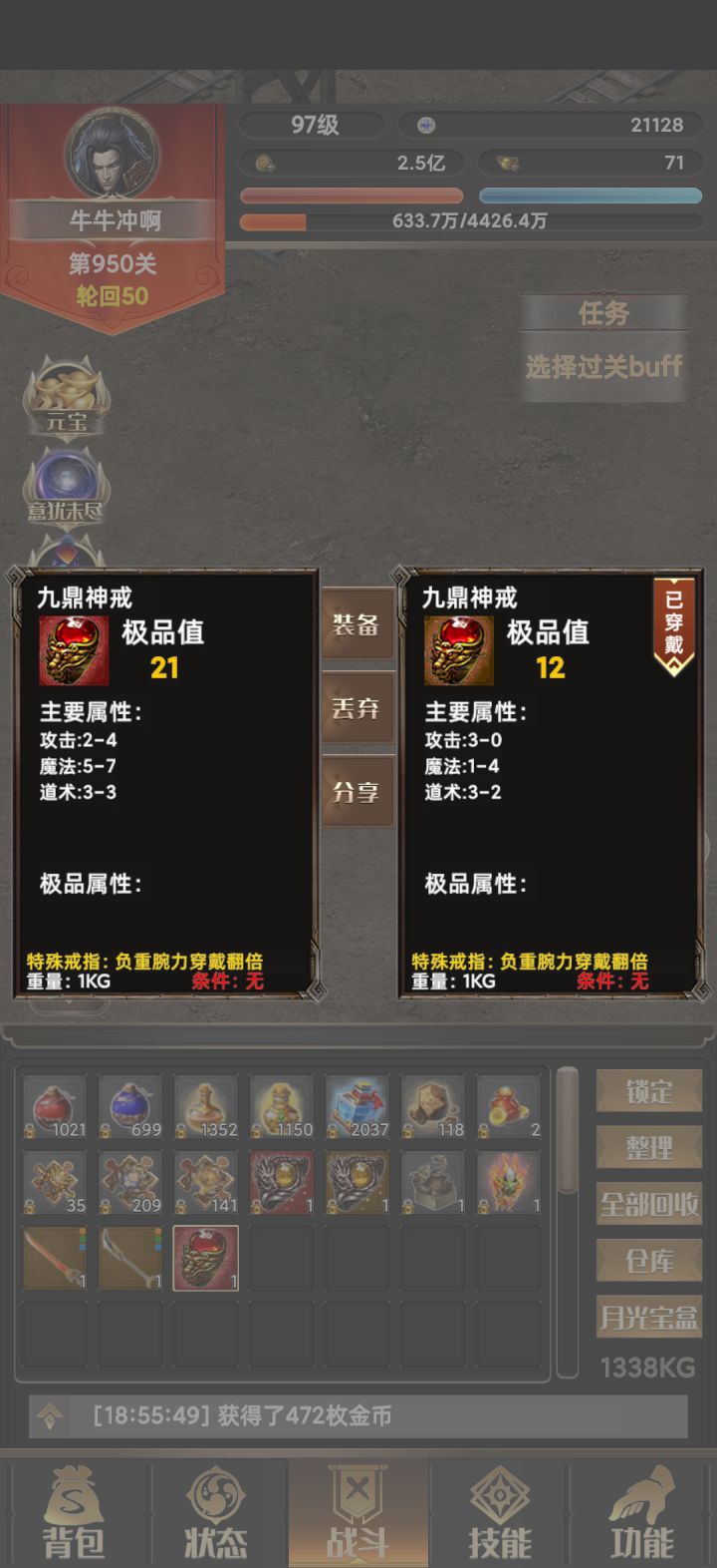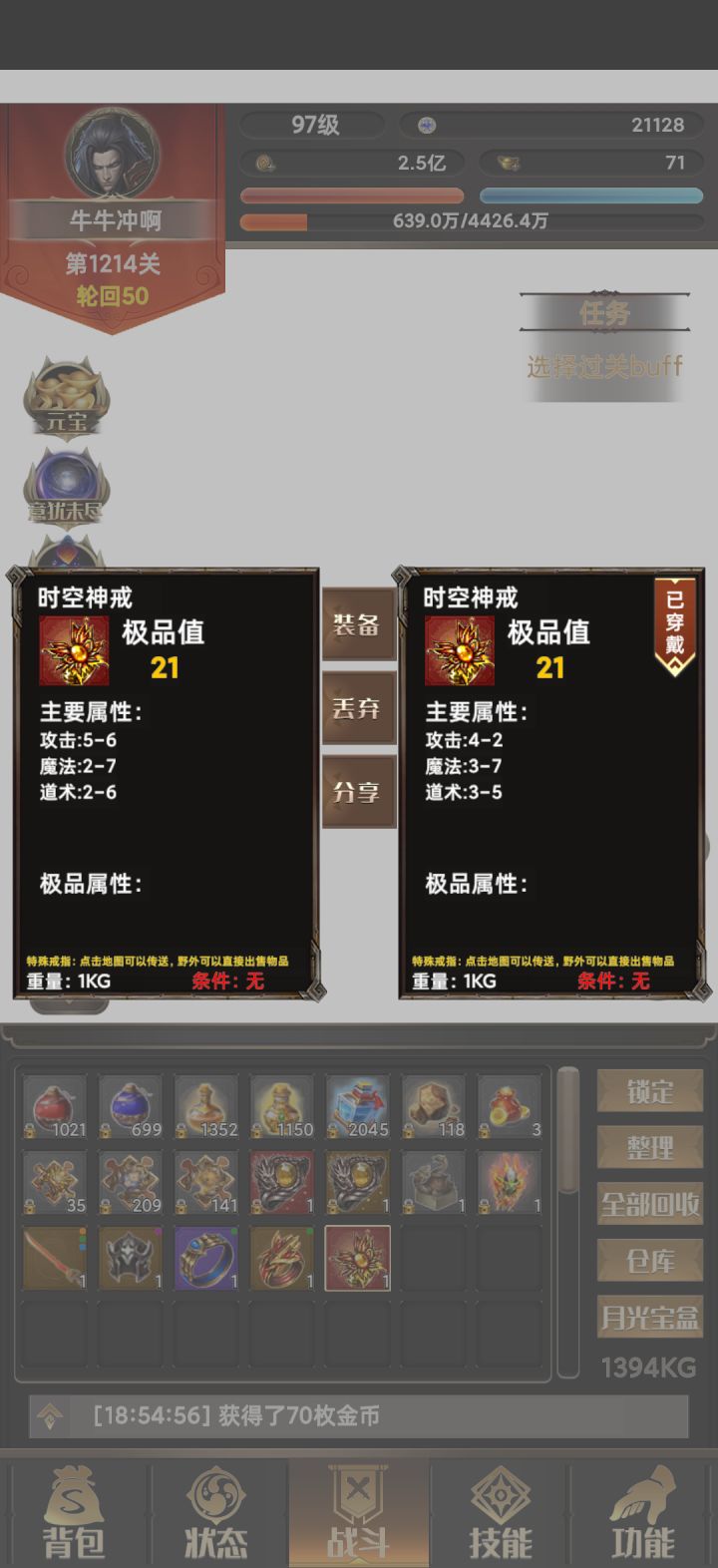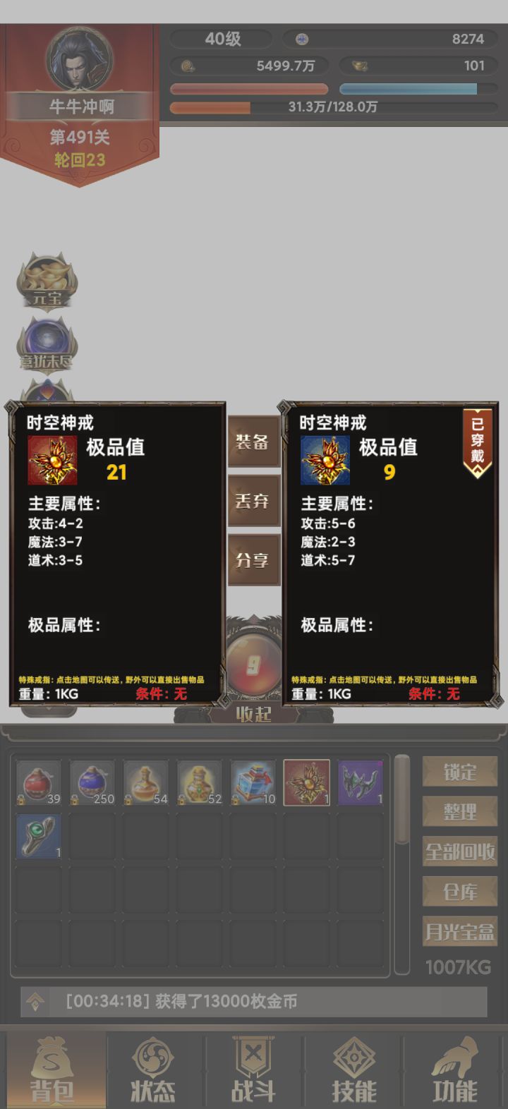 大明保佑!永不空军 轮回十几打深渊一要配复活,我方士打到53就出来了,估计是等级太低,41级,被BS活活敲死