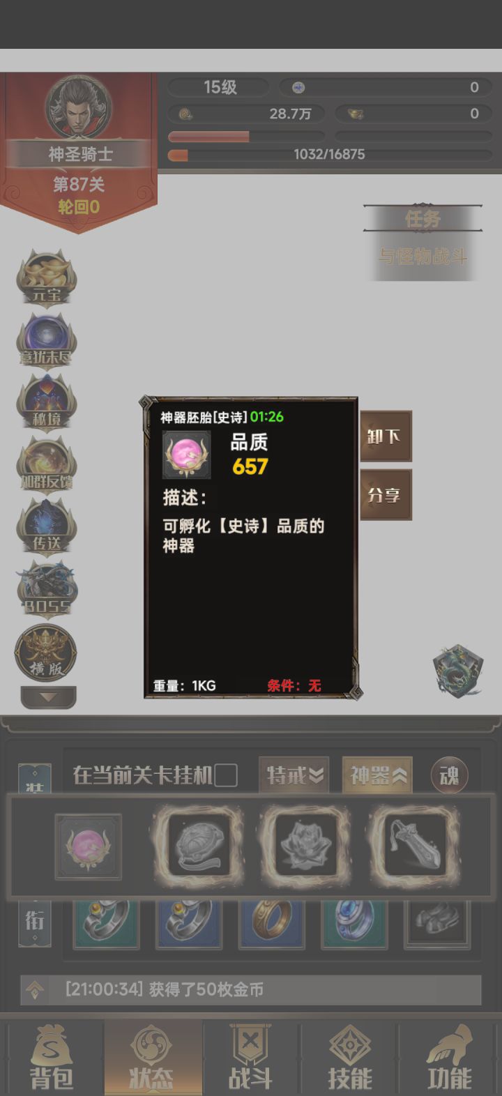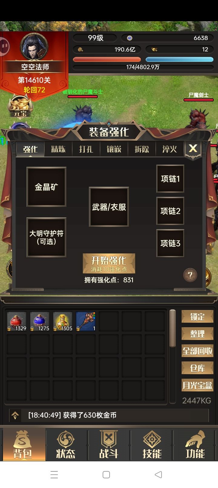 武器差1点怎么办,要不要在等下一把呢?主要是强化点不多了。现在打死生肖基本不用复活了,嘿嘿😜😜😜