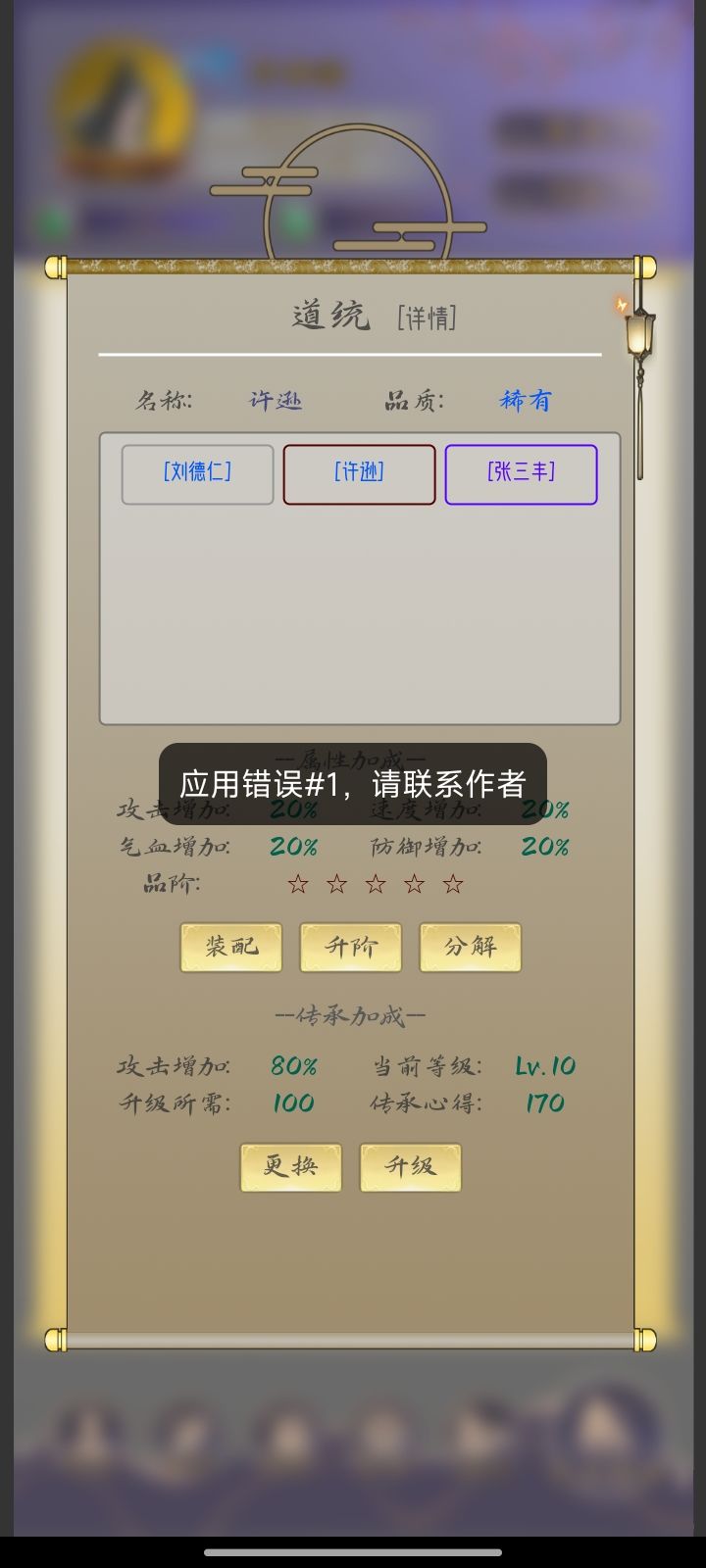 分解道统报错,然后直接退出游戏了