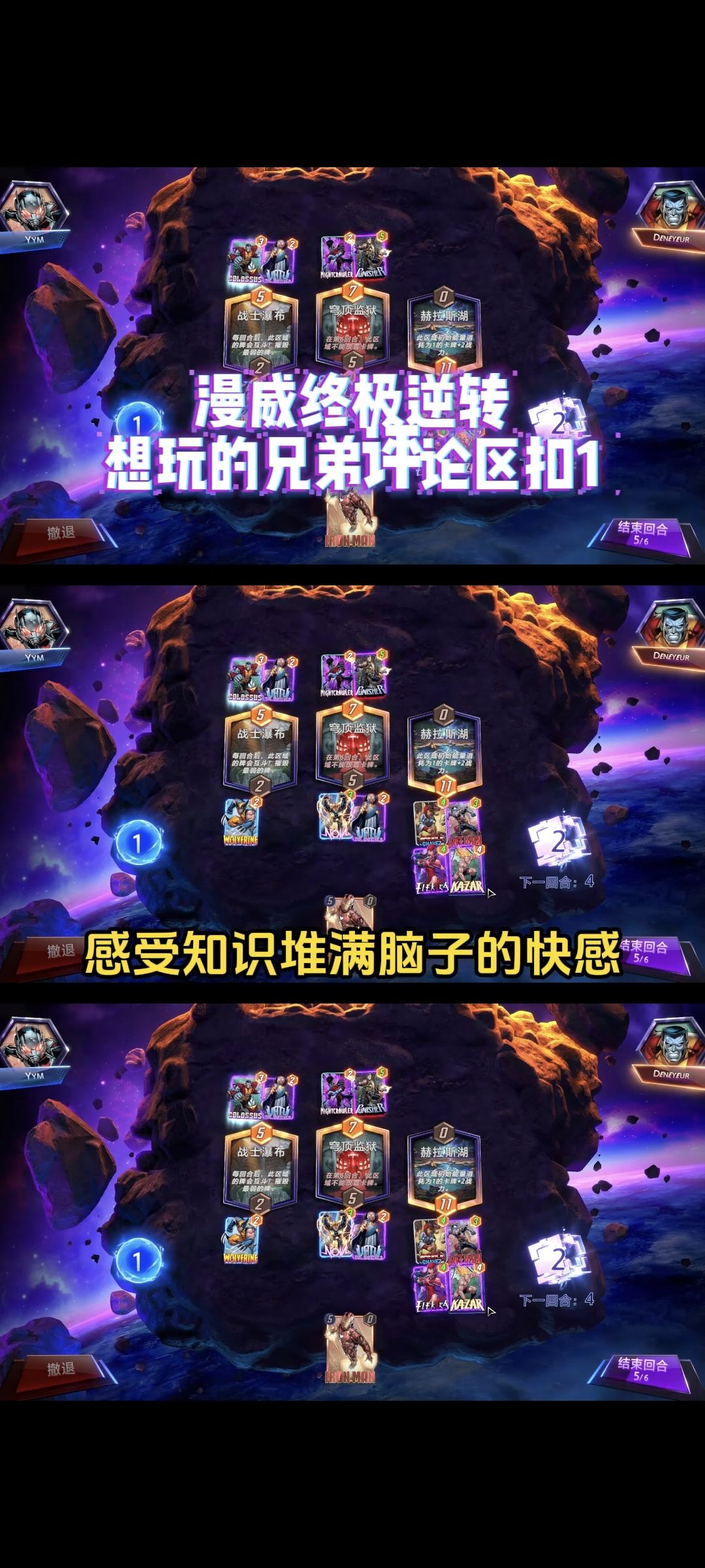 #宇宙牌锐评打分 评分:9-10分,非常值得玩的游戏,上头得很 游戏亮点: 1.快节奏,两三分钟一局,根本不需要肝,平常坐地铁坐公交时可拿来消遣。 2.卡牌设计符合漫威角色定位,还可以见到一些稍冷门角色,可以激发我去看相应漫画。 3.游戏机制简约,三路比大小,容易上手。