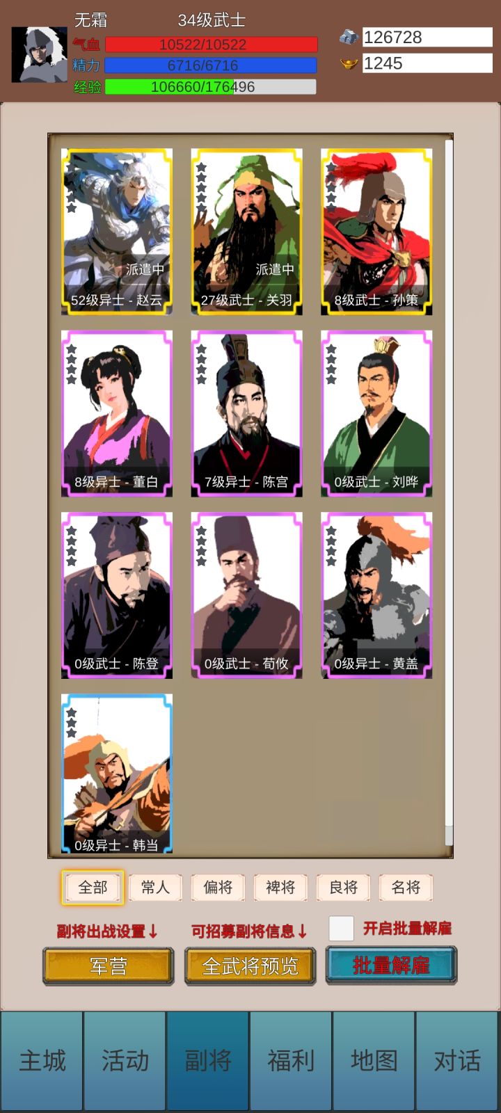 说说修炼时间问题,最多只能12小时,建议可以弄到24小时。另外关于抽将,良将不知道有啥意义,抽良将的牌子又有啥意义,可以出名将概率小点也行啊!