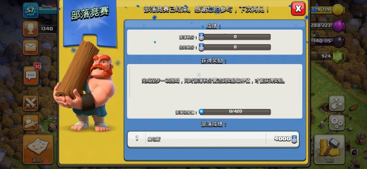 我部落竞赛打了4000分,而且部落也达到了五万积分,但是部落解散了,到了领取奖励的时候却显示我没有完成任务,部落也没有完成任何任务,如图