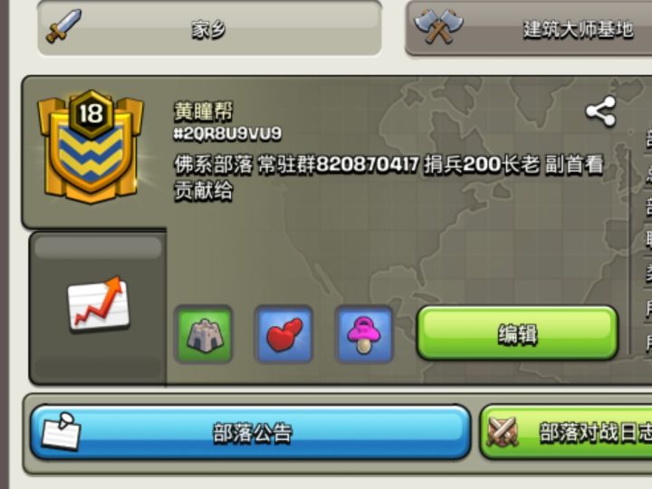18级国际服部落招人部落ID:黄瞳帮#2QR8U9VU9休闲友好 欢迎各位萌新大佬进来玩12本以上常驻给长老 名额有限先到先得如没能及时给到的话 可进群要q群820 870 417