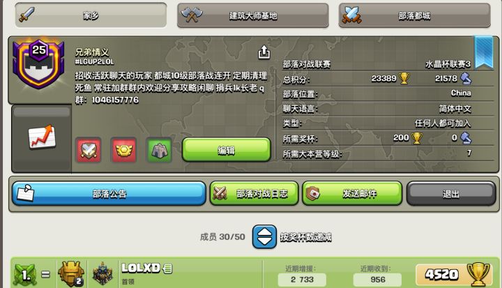 #LGUP2LOL都城10级部落战连开 非活跃勿扰 欢迎进部落聊天 常驻加q群:1046157776 群内会分享各种打法攻略以及闲聊 🈲死鱼 三天一清 #部落冲突clashofclans