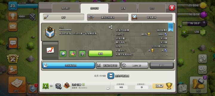 先说好我不打联赛和部落战因为我有点菜,但是我竞赛和都城都会打满,然后我想找一个都城能有1000左右都城币的部落,天天会上一俩次线。希望能找到一个活跃的部落#部落冲突#部落冲突国际服#部落冲突日常#部落冲突11周年#部落冲突招人