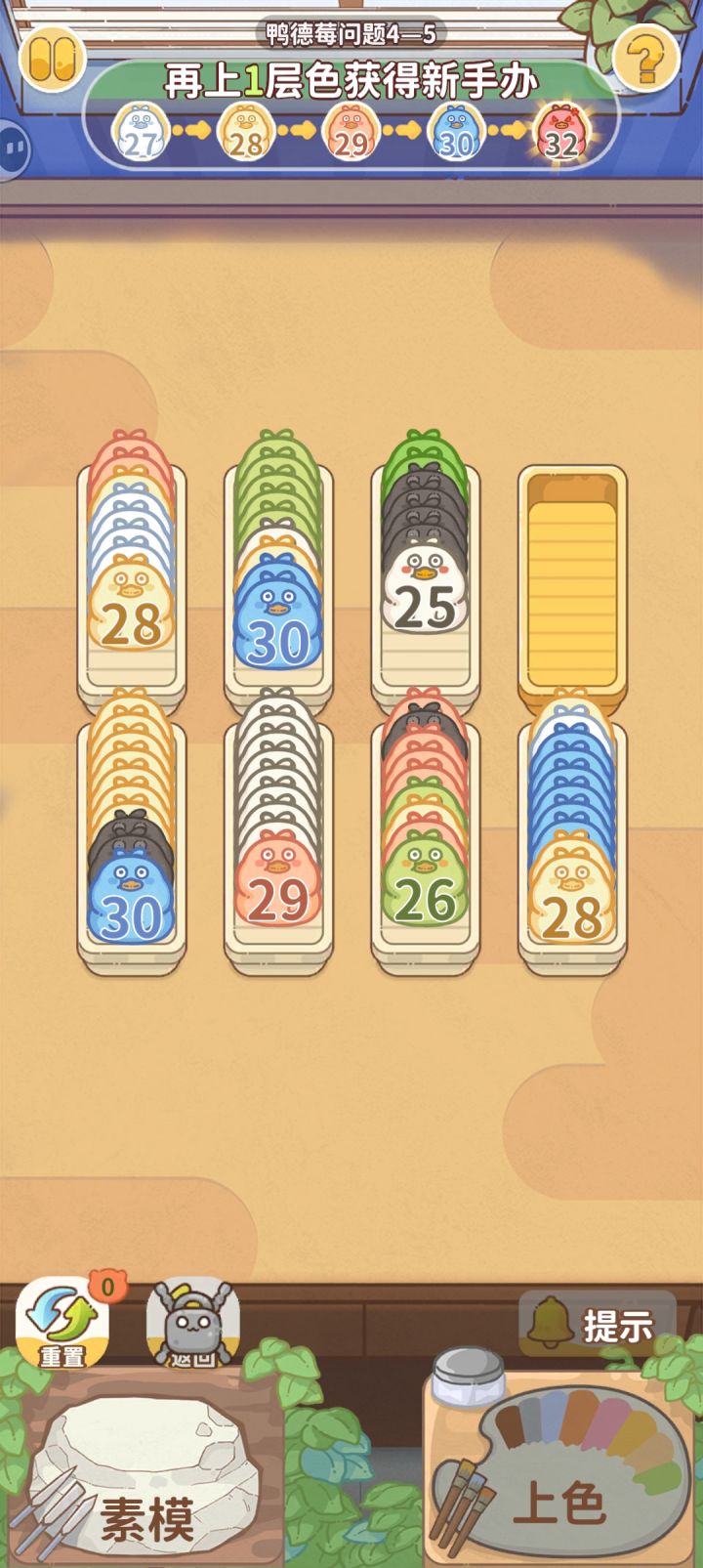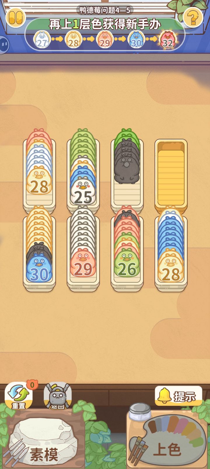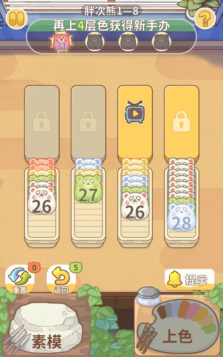 如题,颜色都有五个格子只有四个,根本移不开