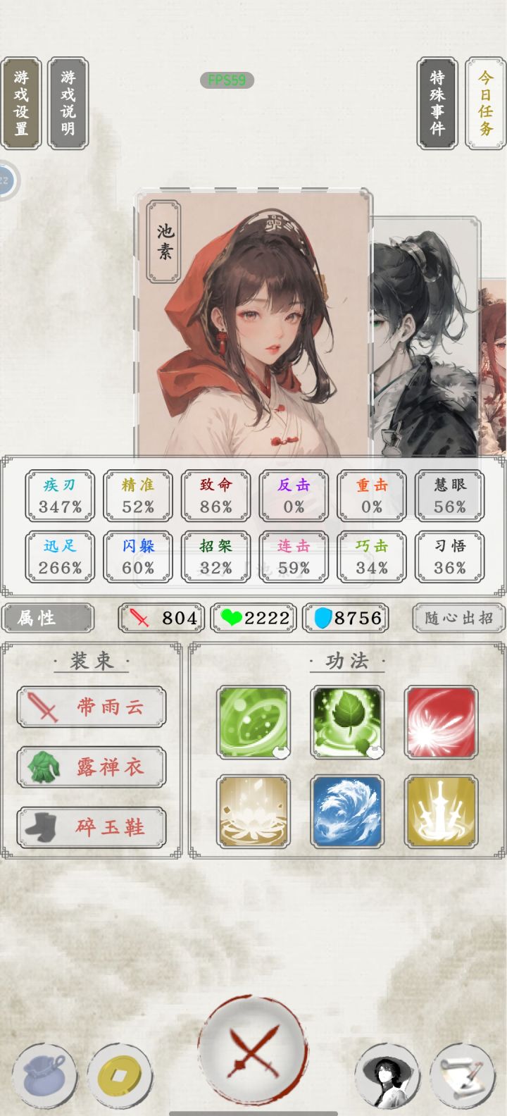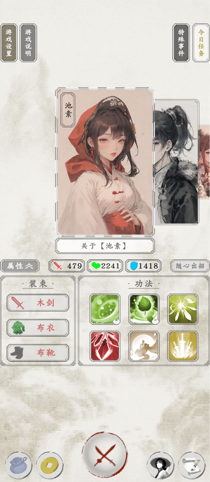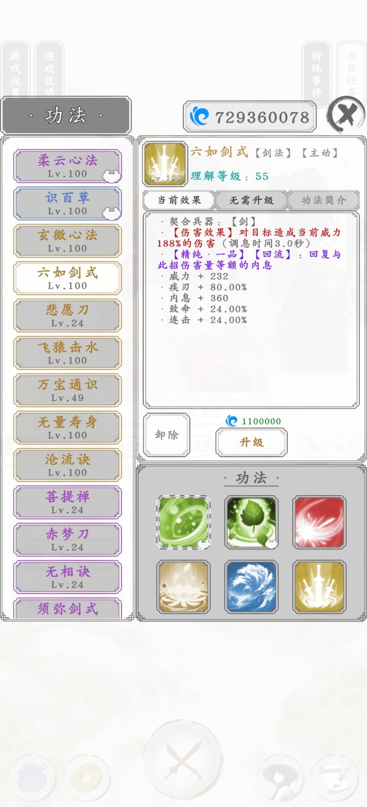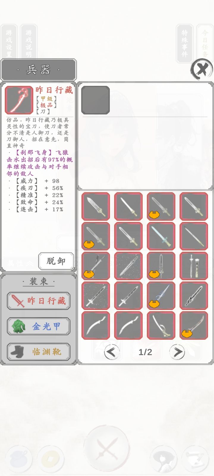 图一就是点击阅读书信后弹出来的,读信读的差点就绝望了,这爆率真感人,大概读了将近两千封信。 关于该人物战力后面再研究。 池素已经无敌,99层无伤通关。 两个金色被动功法,两个金色主动战技,八千多内息,免疫内息百分之五伤害,大概五百以内的攻击都是无效的。 再加上50%概率免疫非致命伤。 战技还能回复等额伤害量内息,大概打出一千五伤害,也就是每击都会返回1500内息。 还有疾刃连击迅足致命