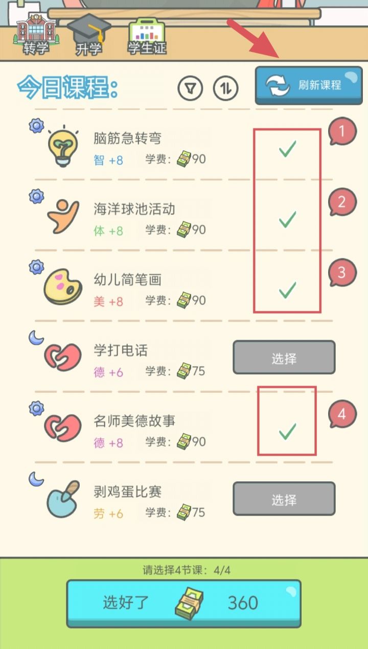 首先需要明确,上学的目的是为了获得点数,从而应聘工作赚钱。一共5门课,每次只能学4门,优先学哪些课是由想要应聘的工作决定的。一、打工的注意事项1.职业选择(同等点数要求下,工资高的性价比高)目前来看这个游戏性价比较高的职业是和尚和飞艇,但是和尚的最高工资为1.8w,飞艇的最高工资为1.6w,如果通关飞艇之后再去应聘和尚的最高职业,需要再刷1w点“德",所以建议选和尚(元始服不缺钱可以随便选职