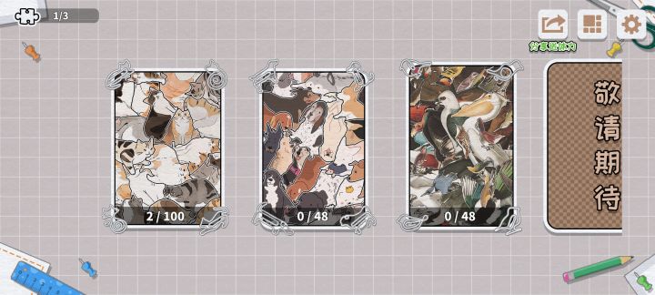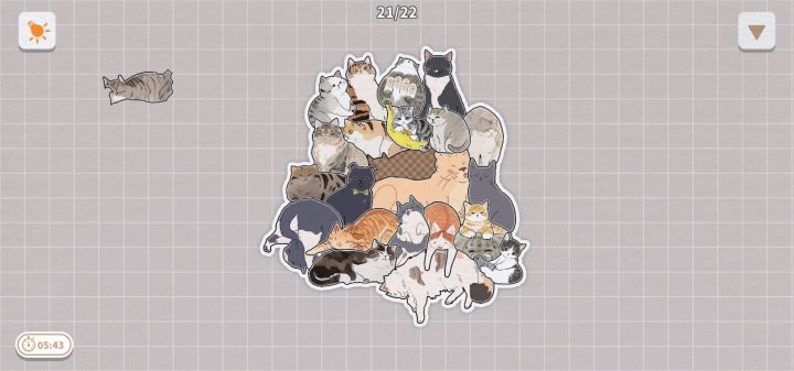 玩了两关不知道是不是我屏幕的原因有些拼图点不上 👉👈这个游戏真的好地诠释了猫可以是任何形状不过ui界面可否优化升级一下 因为拼图的猫是手绘风格 可能那种黑色描边的小按钮和游戏的画风更配 如果是猫爪就会觉得很可爱(小小的建议)