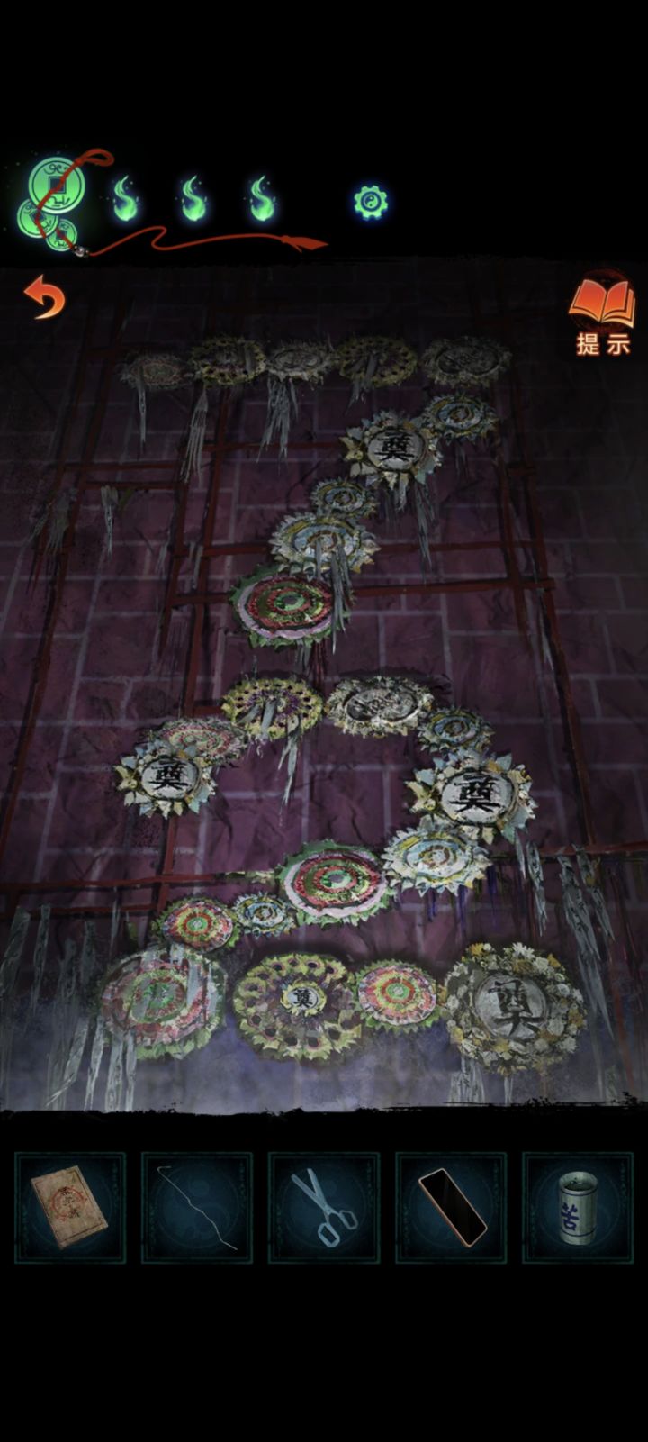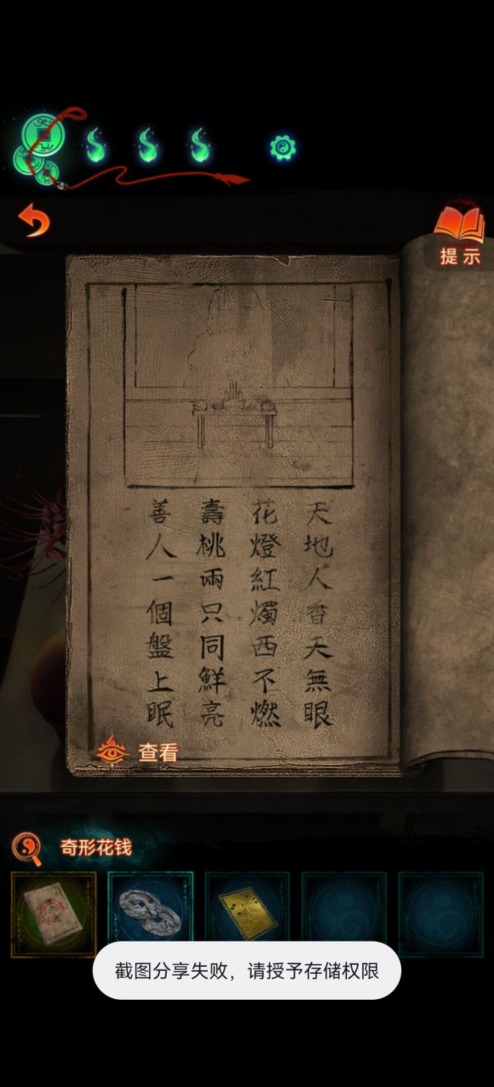 如图是我在望远镜里看到的,这个显然就是楼下花圈下的按钮里的顺序密码,结果我正反着按也没有成功,然后我就去提示那里看结果又有问题了,看完广告也没给我提示#纸嫁衣7卿不负前传 #纸嫁衣7卿不负 ,简直了啊