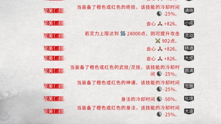 因为个人有点喜欢追求极限,加上这个游戏出了很多护肝插件,资源十分充足,所以希望每一个功法的词条都能刷成完美。但是经过几万石头的试错之后,发现很多词条其实是没有完美的。于是心念一动在一些辅助工具的帮助下,把最完美情况下的功法给捏了出来进行参考。 现在列举一下他们中有哪一些词条是只有接近完美的词条,这些接近完美都放在功法最上方的方便辨认,其他的词条都是可以完美(包括没有显示出来的)首先是劲经诀