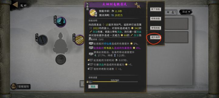 (筑基境详解 结晶境详解 宗门玩法介绍)五.筑基境先来提升一下技能境界选“绝影剑数量”?前期不重要,随便选也可以。材料不够可以去聚宝仙楼买回到宗门,可以报名晋升真传弟子了宗门任务出建筑维护了,剑竹妖我来了壶妖到手技能也学到了 完美雾水魂不能忘记捡到城镇坊市和工坊,把所有技艺书都买了,学不了的放仓库买筑基境俩丸子,筑基戒指,更换戒指、坐骑宝箱图标的小怪在练气境有概率出紫色、金色