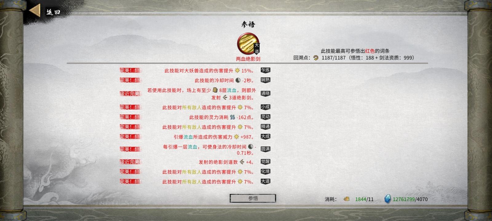 一镜到底,蛟龙神魂增伤需要10次绝技,就这个猴戏墨迹一点。蘑菇3,剑或者刀领域2,穿云电闪1.3,天外有天1.15,蛟龙1.4,雷兽死亡增伤(登仙套效果)具体多少未知,50酸与戒指20%(应该是技能增伤不会乘算),烛照凛刚绝影180%全技能增伤(只有4秒),先受后攻小部分看掉血量