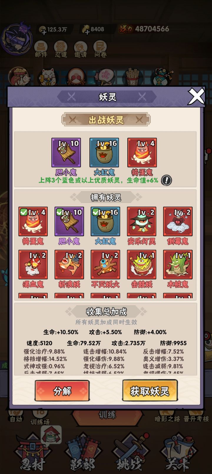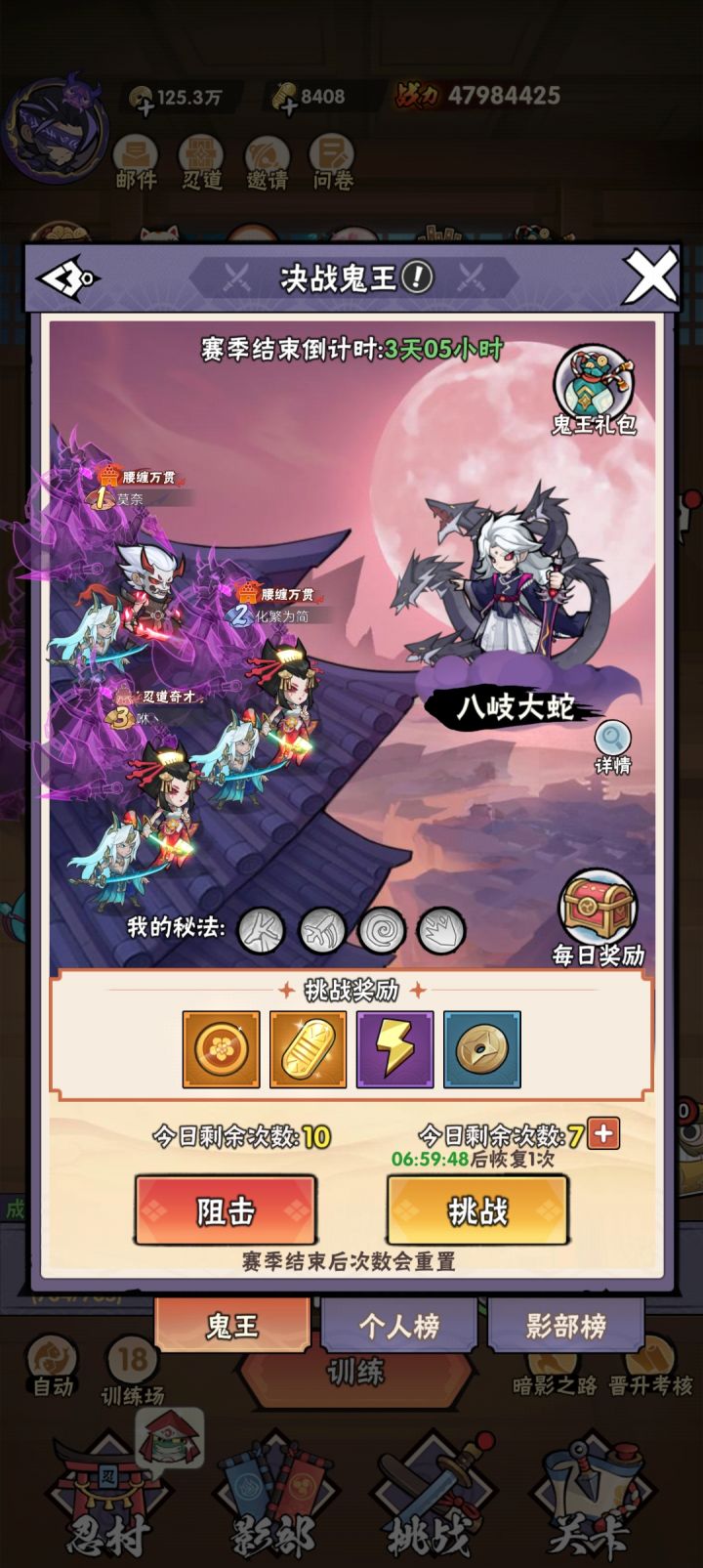 TapTap区服: 11服ID: 太上忘川 流局前期选择连爆,式神可以选择凤凰火增加连击,或者魁打出倍数伤害,式神技能最好带有高连击,高威力,高暴击,其中之一或多最好,妖灵:车轮滚滚,恶毒鬼,瞪眼鬼,如有更好选择,恶毒鬼,贪食鬼,爆裂妖灯,输出伤害更高,忍法可带: 连续突袭丶引爆符丶生命吞噬丶攻击强袭。 前期活动封印巨兽可用忍法:可以选择连爆输出巨额伤害中期连爆反击打满伤害。开局: 前期