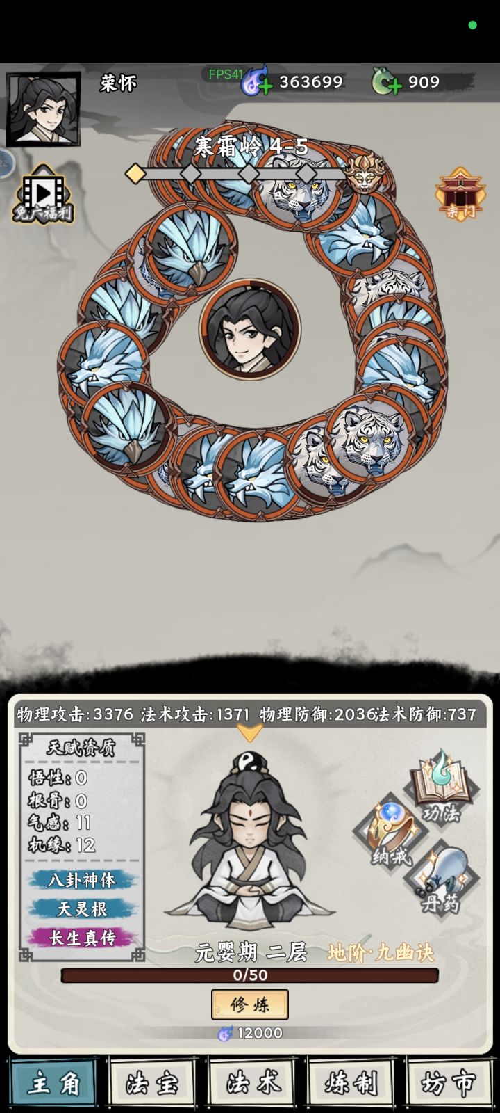 勾史一大坨,纳戒功能放那不知道干嘛的,点进去全空的,材料系统有bug,掉一堆材料但不增加,天阶功法30s给12灵气,1000灵气升2~3点修为(变异灵根,目前没刷出过橙色灵根),筑基10点修为升一小阶,装备升级也要靠灵气,功法升级成本很高而且暂时看不见对修炼有什么加速效果,数值用脚填的完全没过脑,宗门里的药田里的广告看了也是不知道有什么意义,点击瓶子直接进广告而不是先告诉你有什么效果再问你要不要看