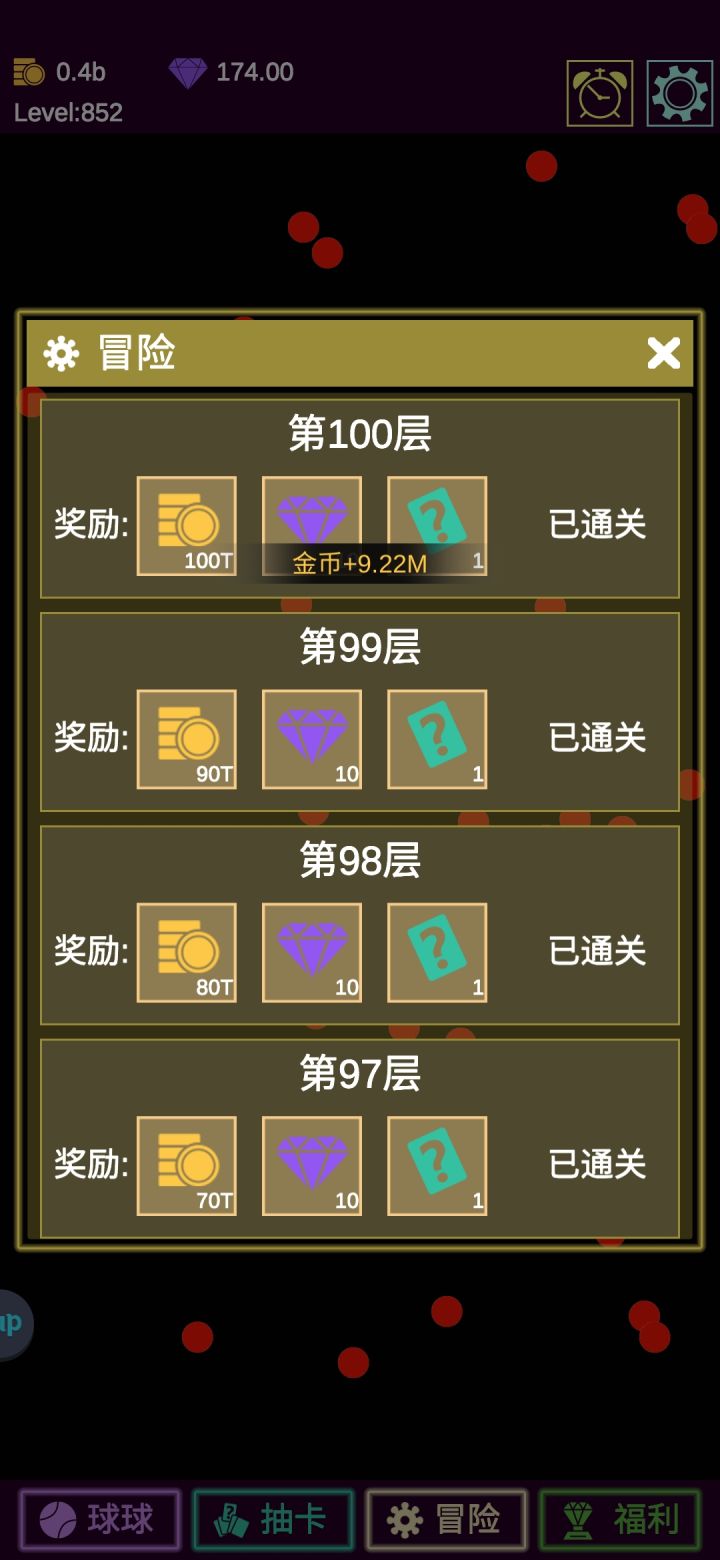 现在不知道是不是bug,"钱钱"球可以对冒险boss生效。本人总共游戏时间91分钟,关卡才打到800多关,没有改系统时间或者其他修改方法,全靠该bug刷的钱升级,希望官方能够看到并修复一下。