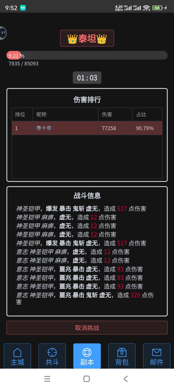 第一天,做两件事。一:申请加入玩家群,群号474754087。游戏内有组队副本,难度颇高,游戏群内有大佬基本副本都能带新人打通。游戏内存在高风险操作,不搞清楚可能在不经意间损失重要道具,操作前多问。二:新手签到后点击页面最下方“共斗”,点击右侧“自动”,选择8小时。当天睡觉前一小时,收邮件,搭配当前最优配置,把“副本”内“每日挑战”的三个每日本层数打高(失败不会扣次数,可多次尝试),打到打不动,点