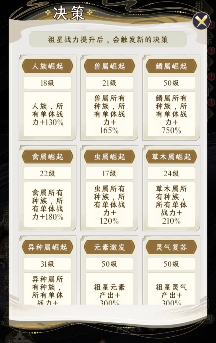 决策是不是没做完呀,其它决策现在战力怎么涨都升不了决策等级了