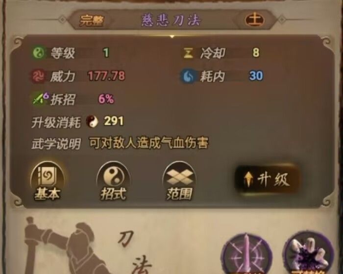 看完攻略1,各位大侠已经进入门派的读书路了。奇遇武功我觉得不值得使劲学(就算江湖3阶范围也小,前期单点,30好像才变小十字,一辈子小十字)我优先走门派路径。门派1阶入门就学,3阶门派轻功和门技前面基本放弃,缺学点,缺书简。武功栏左下基本功,前面学个20就够了,加大不少平a范围(学点花费比3阶都贵)。1阶学到30,开2招,师傅好感到30教2阶。2阶50,开招满,师傅好感80教3阶。1.2招式突破