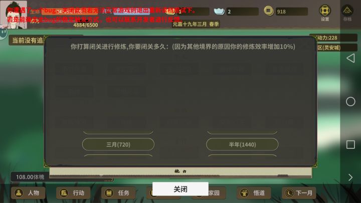 不知道什么原因仙人没出现,功法和开局四选一的东西还有选择初始元煞(是这个字吗?)都没了