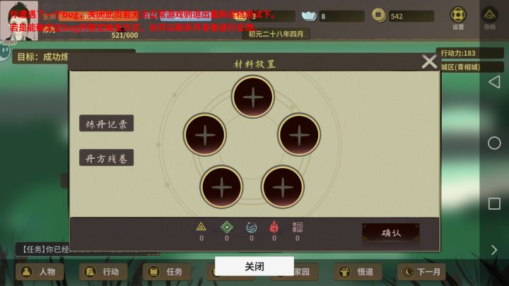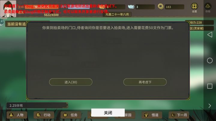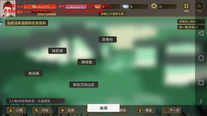 点那个采石场打工之后提示bug,多点几次,然后体力就成负的了,之后不管再怎么重进体力都会是负的,之后再点消耗体力的都会提示bug,等于是说被困死在这了,没发移动了