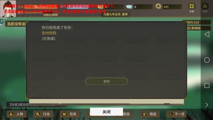 有bug丹药上交不了,然后就卡死了