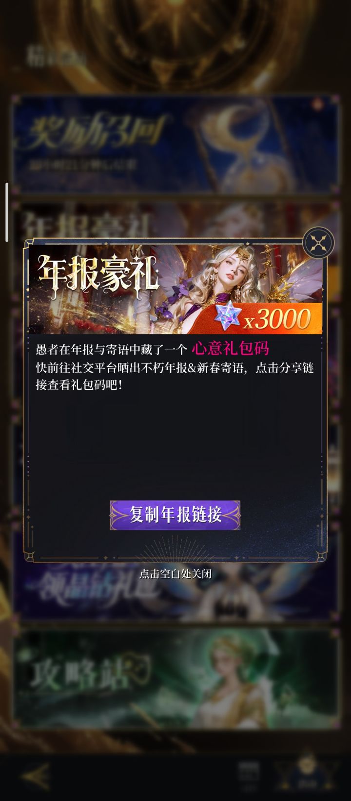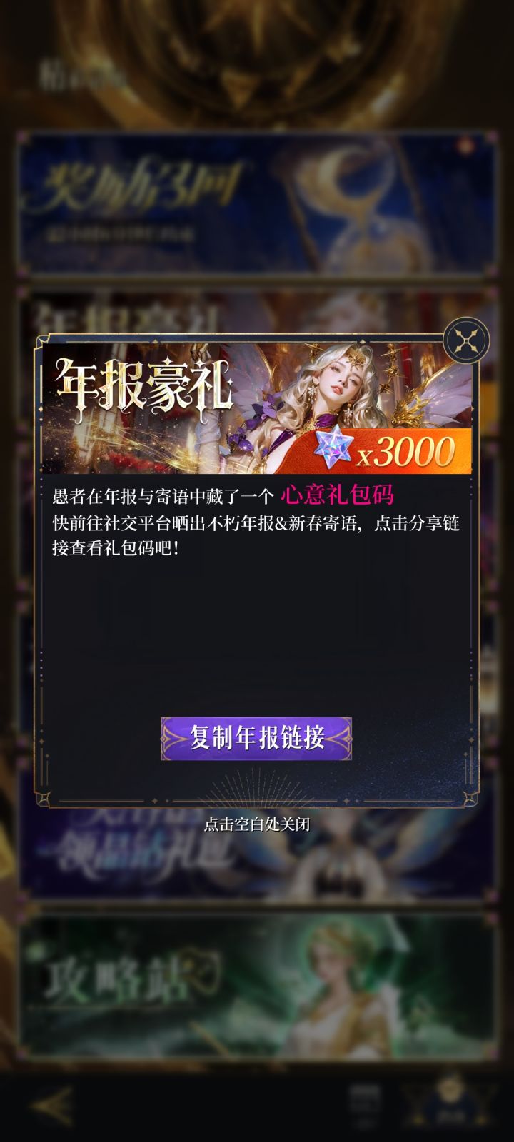 愚者在年报与寄语中藏了一个心意礼包码,快点击分享链接查看礼包码吧!https://eternoracle.seayoo.com/event/spring-festival-2026/index.html