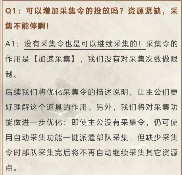 一、前言最近偃武官方发布了一期《偃武策划说》,其中对玩家们的反馈做了很细致的解答,以及给出了后续的优化方案,所以这篇文章也是以个人观点给大家解读一下这期偃武策划说的内容。二、内容解读1、自动采集问题优化游戏中的自动采集功能,很容易让玩家产生误区,认为不能自动采集后,就是不能采集资源了。包括我自己在刚开始玩的时候,也是这么认为的,自动采集加速令用完了,就不去采集了。实则没有自动采集加速令