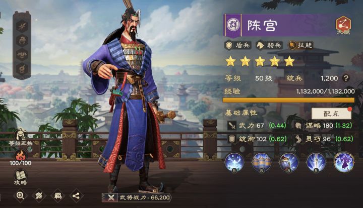 对于初期开荒而言,队伍除了输出能力外,减伤、续航机制也比较重要。陈宫自带续航,可为主将提供抗震,属于万金油类型的技能武将。今天给大家带来陈宫综合测评及配队推荐,小伙伴们可以做个参考。一、武将简评陈宫是紫卡,但谋略成长高达1.32,可通过主动技提供范围治疗、维持队伍兵力稳定。其被动还可提供增伤、抗震效果,简直就是技能体系首选副将(过渡使用,而且可以用较长时间)。【技能解读】1、怒气技:天地不
