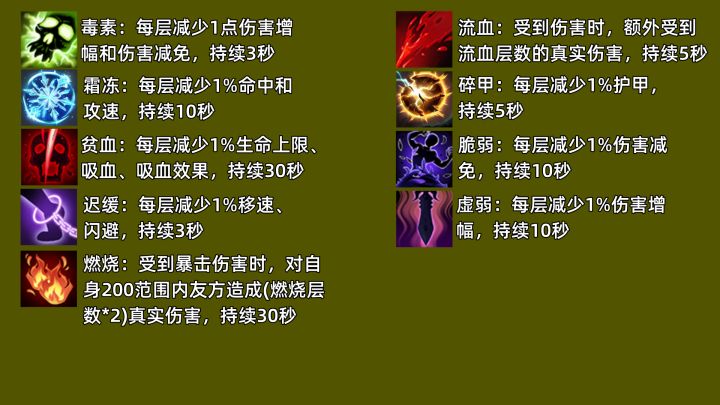 游戏中有很多BUFF效果,主要分为【祝福】【诅咒】【祝福】就是对自身有益的BUFF效果【诅咒】就是对自身有害的BUFF效果 任意BUFF的最大叠加层数为50层 施加BUFF时会叠加层数并刷新持续时间 玩家可以利用不同的BUFF组成多种玩法流派〖详情在顶图,左滑图片可查看〗#我在异界刷装备 #游戏种草计划 #攻略 #游戏安利