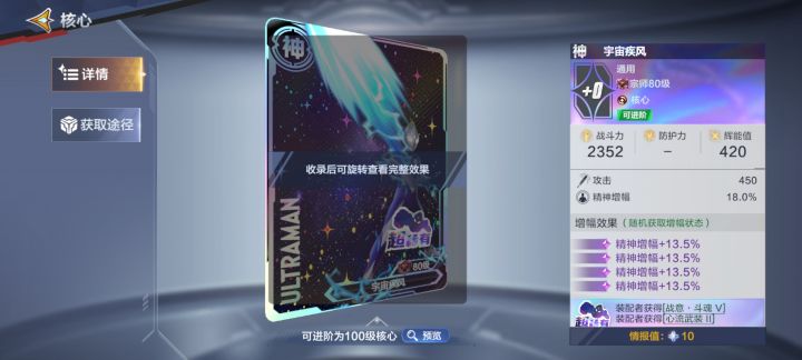 hello~everybody!前几天咱们奥特曼超时空英雄也是更新了一波,其中更新的重要内容就包括光之刻印的【刻印合成】与【刻印升阶】。【刻印合成】 刻印达到7阶以上便可以进行刻印合成,需要消耗两个刻印,合成刻印的属性与颜色与加入的刻印相关联。合成刻印的基础属性与词条属性皆为1-2条,当合成刻印为“异色刻印”时,必定基础属性与词条属性同为两条。所以【刻印合成】个人觉得,主要就是为了获得“异色刻