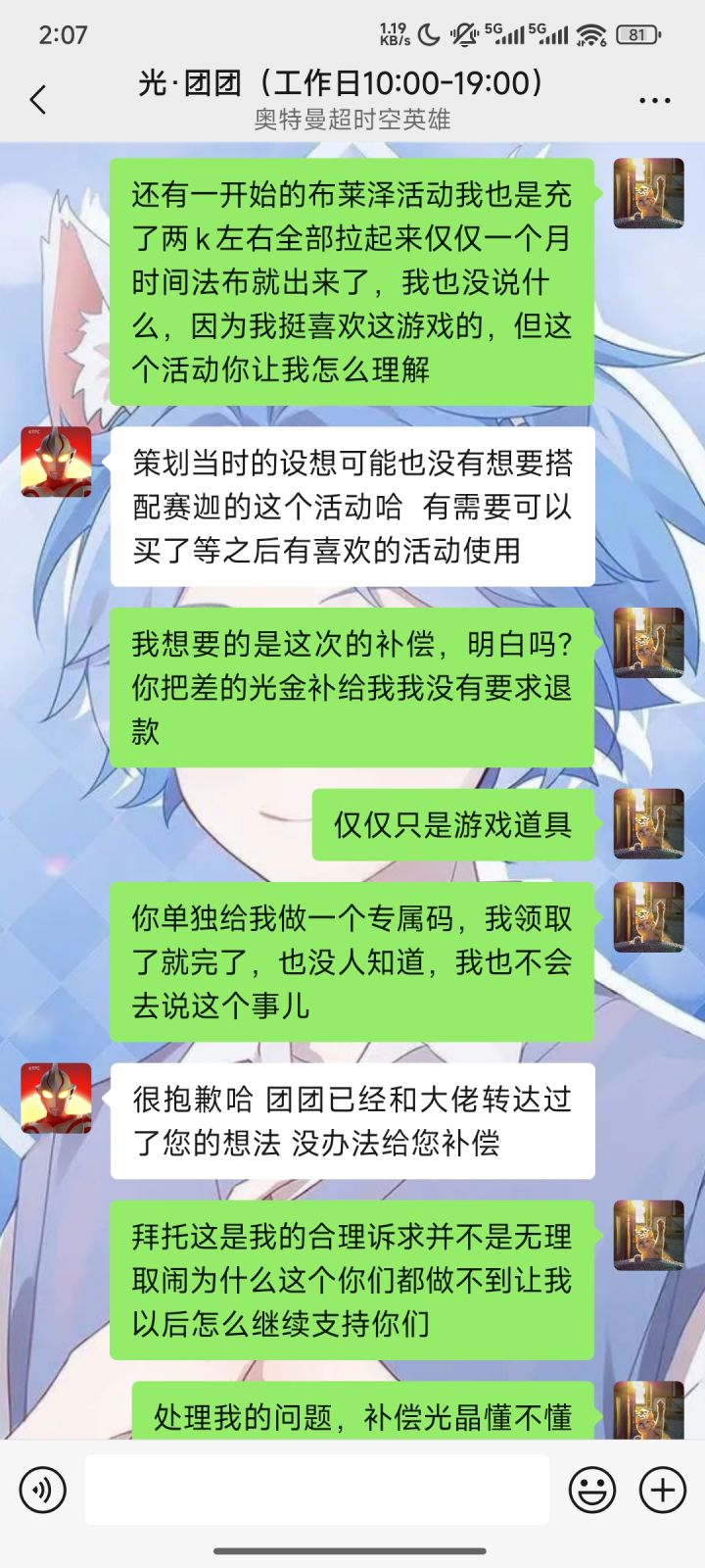 #奥特曼超时空英雄 昨天下午充值648,今天弹出个双倍648,最可气的是中午问有什么活动啥也不说,到现在口口声声说没有造成损失不予补偿,人言否#奥特曼超时空英雄
