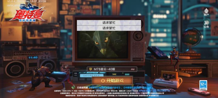 选了服务器进去后就开始卡动画 然后卡到和贝利亚打 但是画面一直卡在这 能按技能也能听到背景音在打 但画面就是一直卡死在这#奥特曼超时空英雄