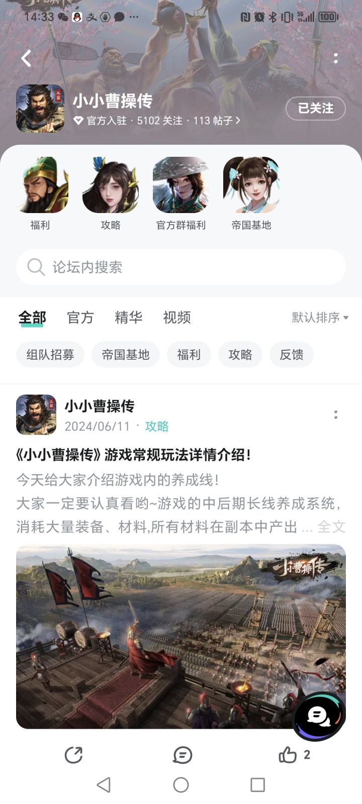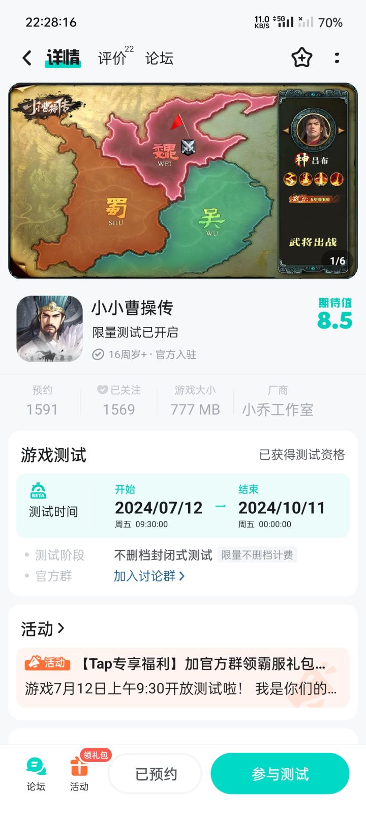 预祝《小小曹操传》公测开服大吉!玩家越来越多!热度持续不断!游戏内容越来越丰富完善,争取在同类型游戏中大放异彩!