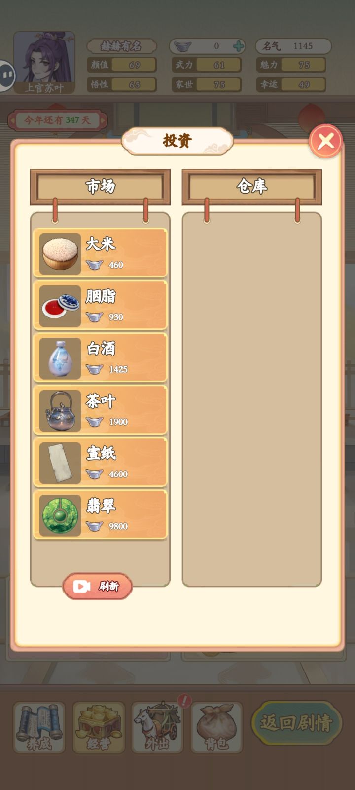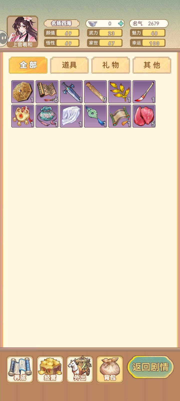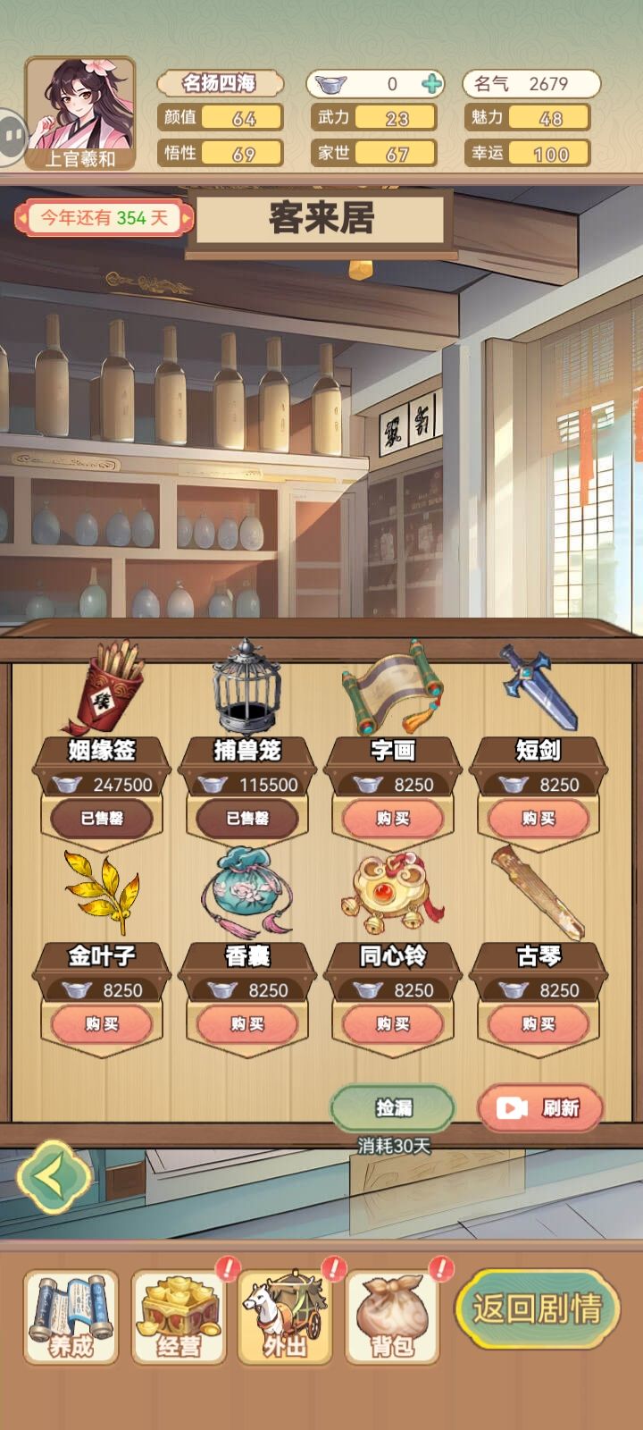 外出界面经常点不开要重进才行(贴图正常但但点了就是没反应);有钱但是显示0(玩一半突然正常了);背包里衣服不直接显示但是点其他物品又会出现