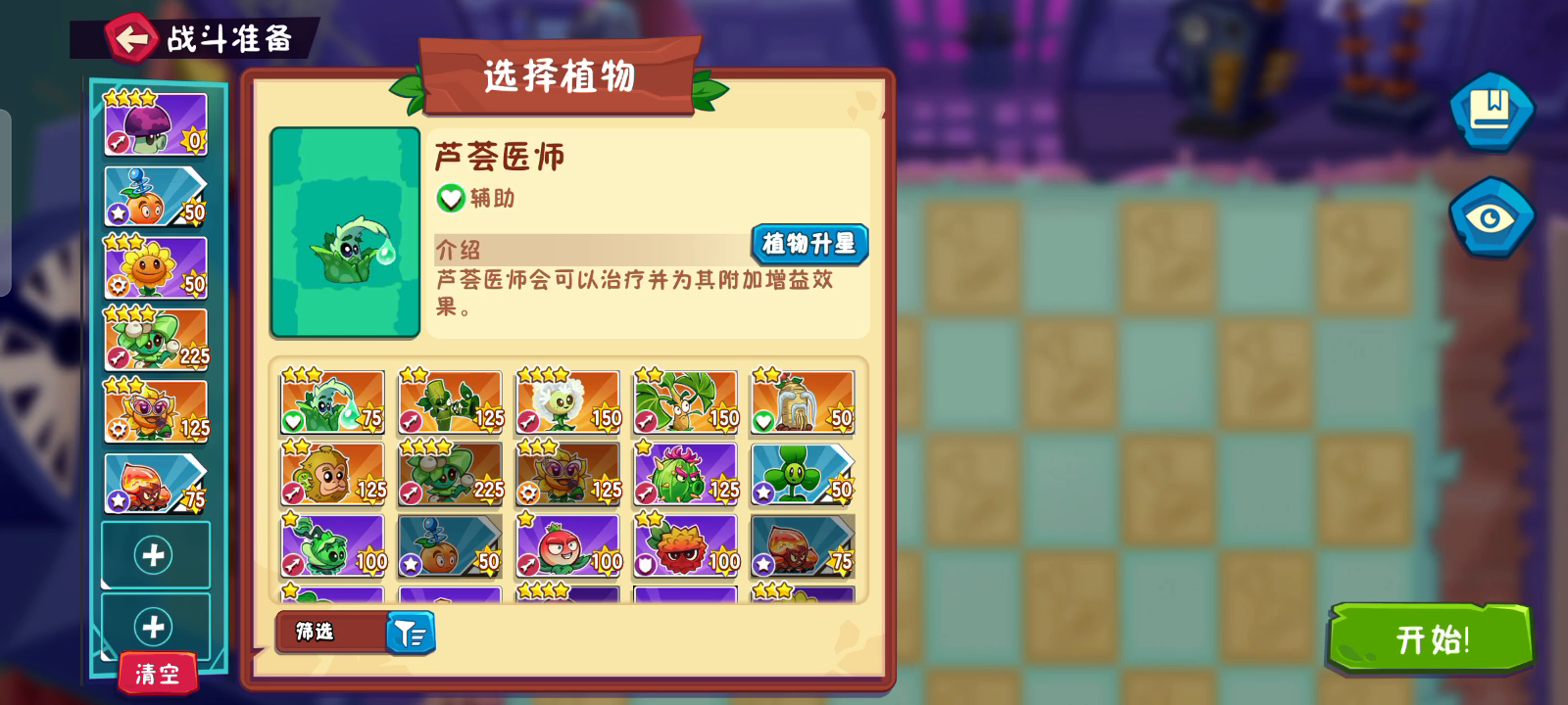 开服三天,能打的全打完了,等明天升级开图打BOSS和斜坡地图用斛寄生,出伤快,打全图。普通地图用蒲公英,便宜好种且对空。前排就养坚果和荔枝,种两排坚果比老人参芦荟治疗更好,电坚果持续回血,一命还带复活。有斛寄生,向日葵就玩火花,没有就玩风花。开服第二天芭蕉基本都会送到一命,别人说坚果防线好用,我试试再评价。