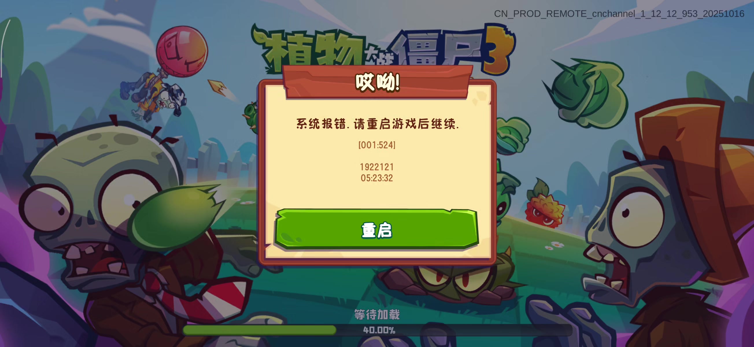 连续两天登不进去,卡在40%,然后就弹报错,重启后卡到40,接着弹报错,一直这样循环。恶性bug不修吗[表情_疑惑]