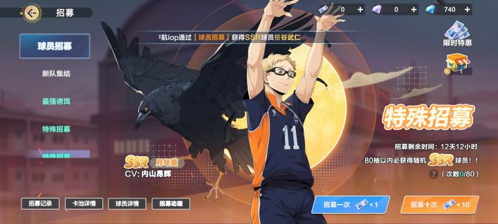十次机会居然一个田中也没刷出来,灰羽和另一个,岩泉一也就两次,果断跑了,就四个角色还能这死概率