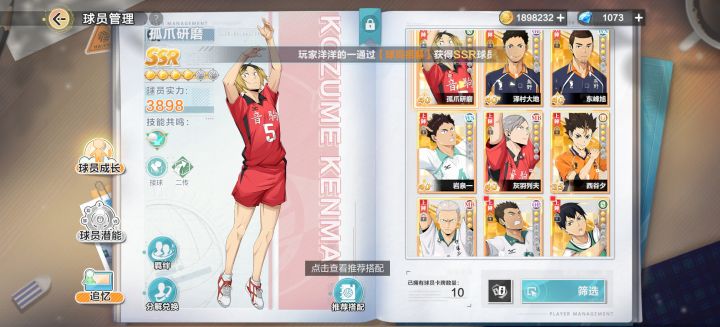第一天玩,氪了5Q,抽成这样研磨技能+1,东峰旭技能+2,影山技能+1,有个自选,等7天还有自选,哪位好心的老板推荐个发展方向
