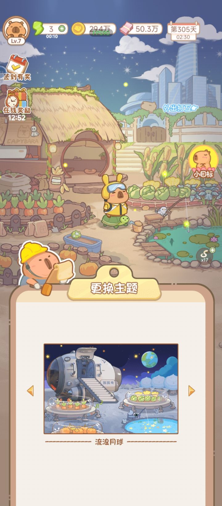 第一次家园升级收集满碎片后,跳过流浪月球,选择客栈,之后就不能再升级,也不能获得流浪月球了。更新版本1.0.0(10),有夏日主题,小目标出现家园升级任务,跳转过去也无法升级。