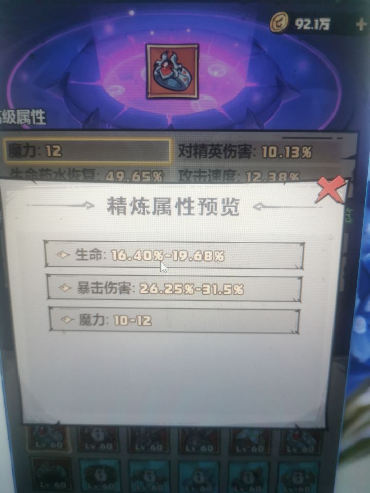1234为同一件装备。无意中发现的,看图同一件装备,这样搞打出来的装备极品率太低了。每一个装备的装备词条,四个属性属性格子不同可精炼的属性竟然不一样。注意图4那个暴击,前面三个词条里面竟然没有。😰5678为同一件装备看图6。跟图578对比。元素属性竟然就第2词条有。😰