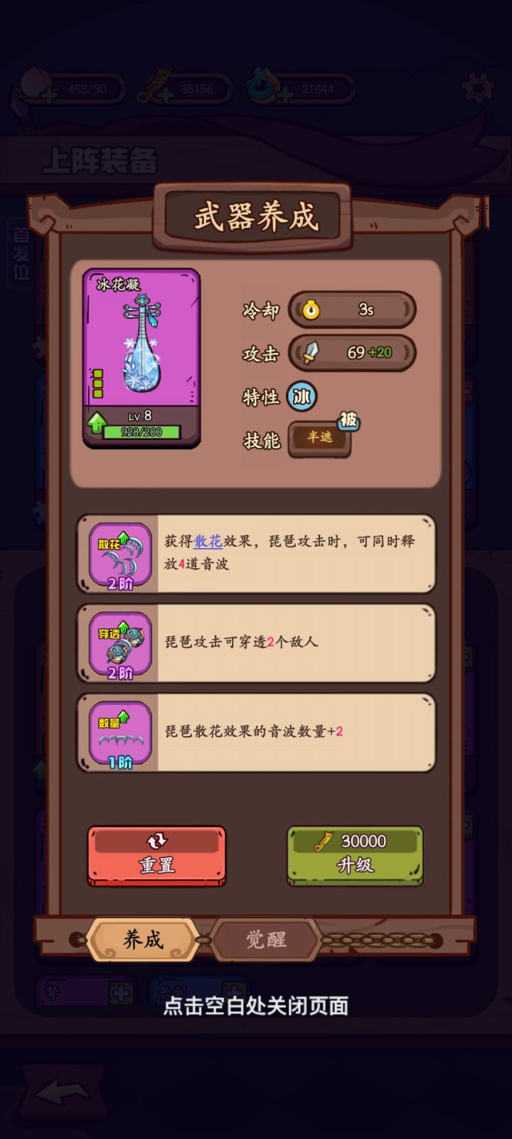 这是一篇纯萌新向的帖子。为了减少萌新的学习和阅读成本,本篇会把最重要的结论放在最前面供萌新参考,感兴趣的可以继续往下看更详细的指引说明。跟着指引打完第一关之后:1. 去商城自选戒指,棍棒,棍棒总共四次。刀币不够可以找兑换码或者看一下刀币广告。此时棍子可以升到6级(如果没有卡可以酌情看广告 这是性价比最高的广告了)2. 武器在主界面左下角的背包,打开认识棍棒,戒指,钱袋这三样装