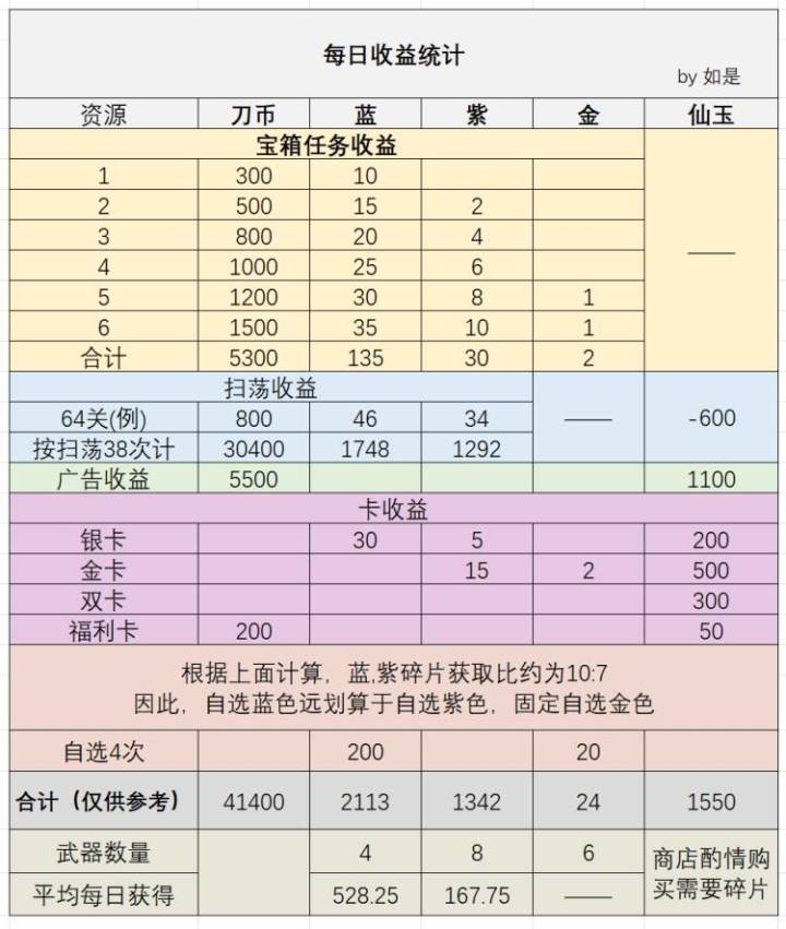 这一篇是给大家提供一下日常的养成细节参考。如果不想看细节分析可以直接看粗体和下划线内容话不多说直接上干货:我对每日的资源获取做了总体的统计,先直接说结论:1. 每日自选第一项选蓝色最划算2. 金色自选首先考虑棍子,可以一直选棍子。3. 每天的刀币收益大概在3~4w刀币4. 抽奖选猴子,6级猴子之后就推荐每天用仙玉买满体力扫荡关卡最划算。体力扫荡关卡我是默认看五次广告以及买五次体力的