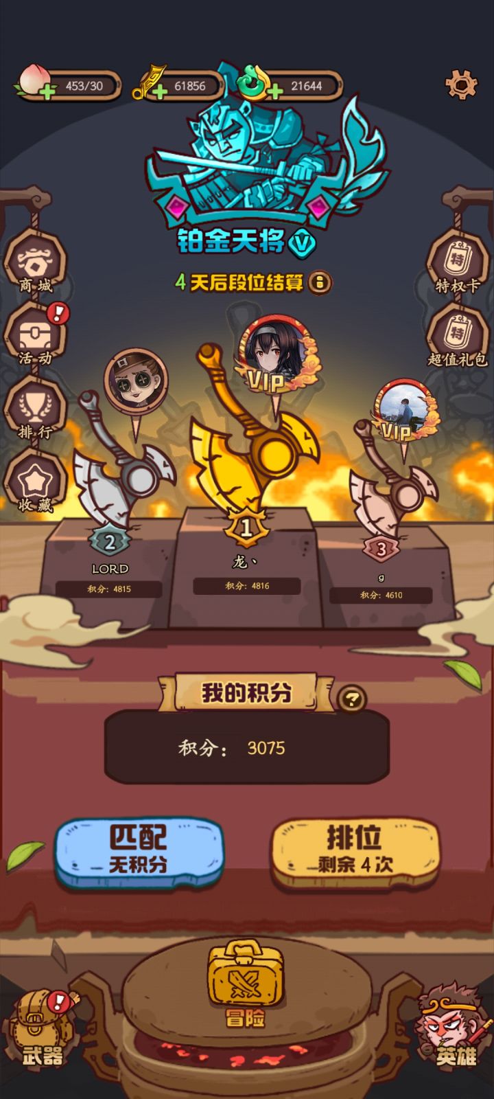 只为了免广告氪了银卡,日常休闲玩的前提下还是推荐棍棍和戒指,到后期为了血量和debuff可以酌情保留宝莲灯如意和葫芦。这个阵容打排位也可以,只是前三把比较容易输,排位推荐拿开局两组格子概率白嫖和开局三星,具体还是看个人爱好,这三个都用过一段时间,白嫖比较持续但看脸,另外两个前期会比较顺但对后面的对抗意义不大。#武器请上场 #请武器上场攻略