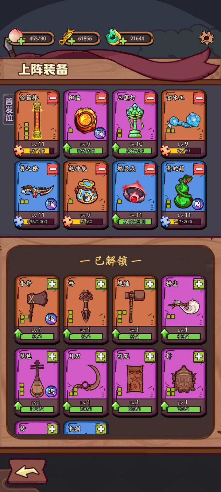 #强者攻略 ##武器请上场攻略 #游戏推荐 建议就是前期有钱的玩棍子配戒指7级觉醒推荐金箍棒没钱的可以玩开局的那个剑7级带九尾然后配钟7级选罗汉钱袋7级拿乾坤然后可以配上玉毡和那个莲花就可以了