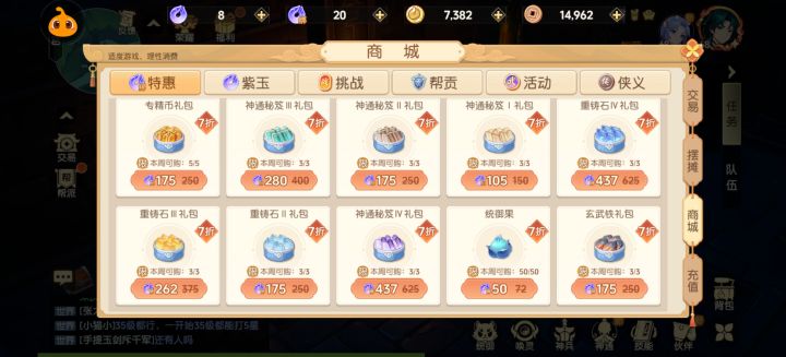 很多人都问大白,大白帮贡积分买什么,挑战积分买什么,活动积分买什么。还有历练,特惠买什么。六今天我作为一期讲解一下。一、绑玉商城。也叫特惠商城。绑定玉商城主要购买的东西就是点化石。在其次买什么,就看你现阶段用什么,比如你现在要洗神通,如果玉充足的情况下,用玉买神通买神通礼包,比金币合适。再比如我洗神兵,那肯定是用绑定玉购买礼包合适。以此类推,没事可以看看商城。随着等级的提升。商城中的东西也会