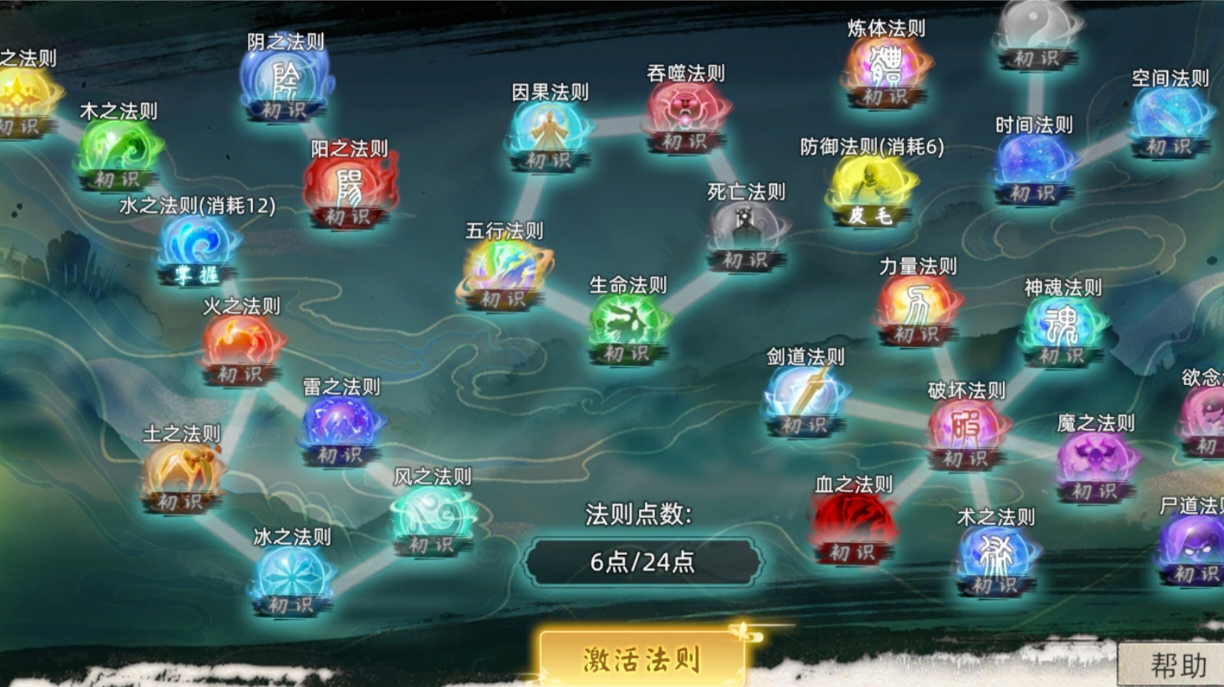 看完老登发的练虚方式,其中我感觉成本和强度最佳的两种练虚就是中级练虚(要求4法则路精通学习进度)和高级练虚(要求8法则路精通学习进度)如果是弟子练虚,比较推荐4精通练虚,如果是老祖练虚,则更加推荐冲刺一下12精通练虚。要想更好的点12精通,首先咱们要了解法则路有哪几种金木水火土冰风雷阴 阳五行,生命,因果,死亡,吞噬炼体,防御力量,破坏,术法,剑道,血法则,魔法则欲念,尸道轮回