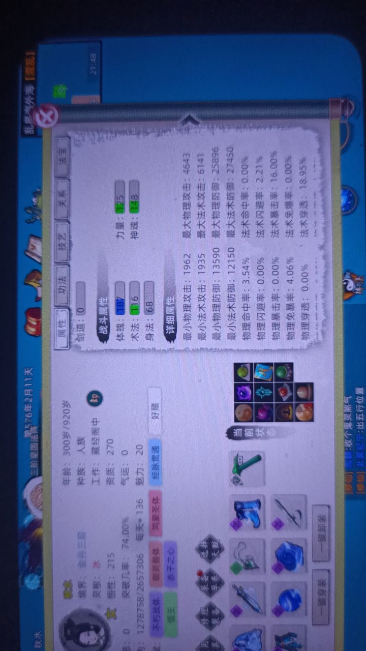 修仙1024年,金丹九了,已选择转世重修了。选了巨富,开出来的都是不好的,很亏本,唉。第八世就弄登仙台吧。然后弟子等待炼丹道尊天道筑基。一天突破了筑基,估计还要三四天方可重修拿登仙。之后的三件传家宝都需要60功德才能拿到,有点艰难啊,唉,也就是说都需要天道筑基了。昨夜魔修横行,一夜之间竟然攻破数座宗门,让听者落泪闻着伤心,还好我在天南挂机,希望以后多出点限制魔修的措施咯。近期,混沌珠里面的灵田