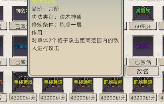 我们玩剑的 得学一个单体远程 目前需要打印记 神威印20%增伤 裂伤印20W伤害 夺灵印吸蓝10W 卸返印 降低15%反弹 冰冻印 冰冻2秒 疾风 CD-5秒 约计35W积分然后是状态一的 剑意印 剑道+100 12秒 体力术身魂每个类型+300属性点 12秒 金身印 抵挡3次伤害 灵盾印 吸收120W伤害 3个有用大概25W积分 还有 回春印 回60W血 回灵印 回40W蓝状态2 战意印 攻