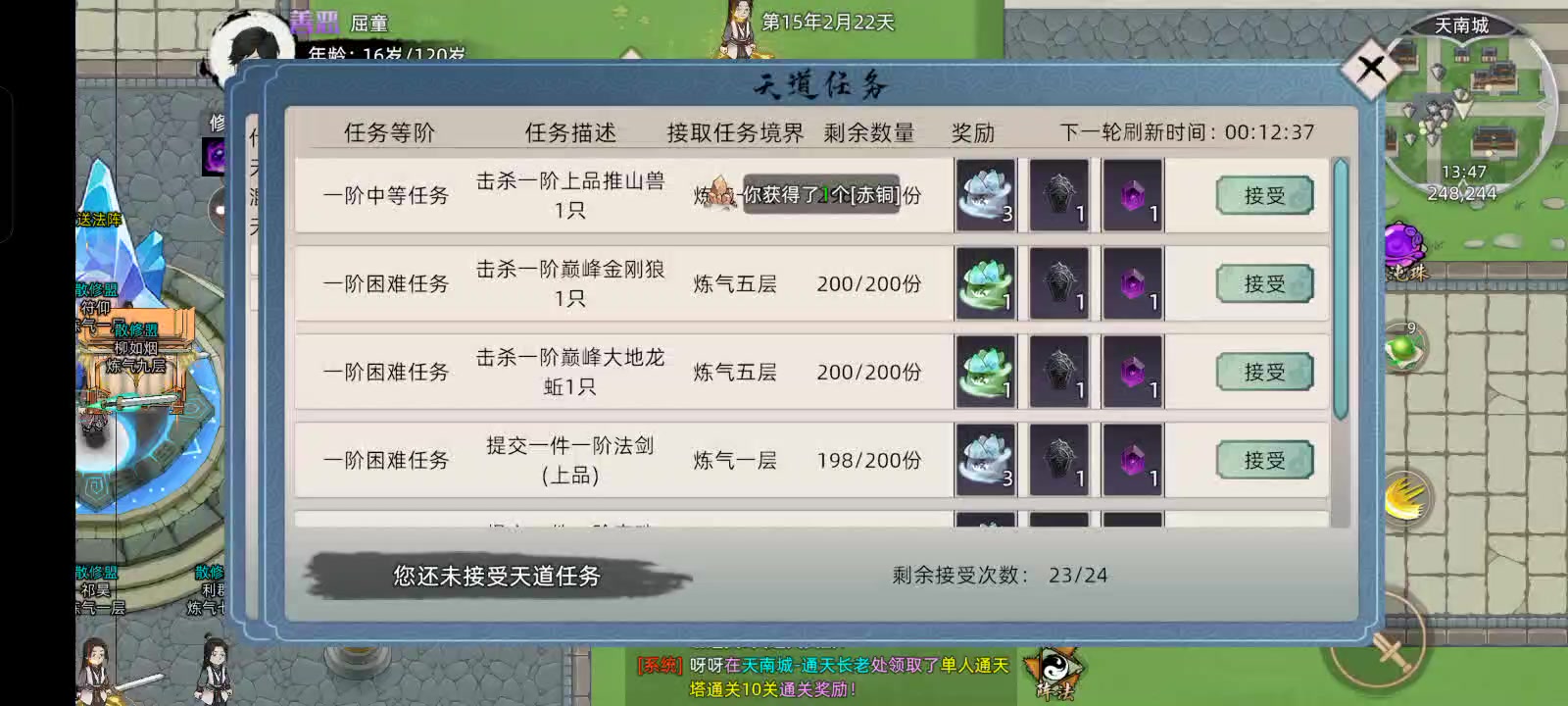 #修仙家族模拟器2二测 打个血色禁地莫名其妙自己把境界丹用了从炼气大圆满升筑基了我的天道筑基啊挖了好久的矿买的1阶绝品极品加血法小词条装备这怎么玩啊